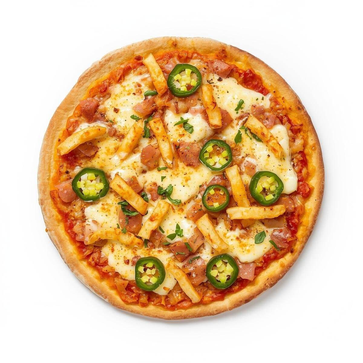 mit Pommes, Jalapeno, Knoblauchsoße