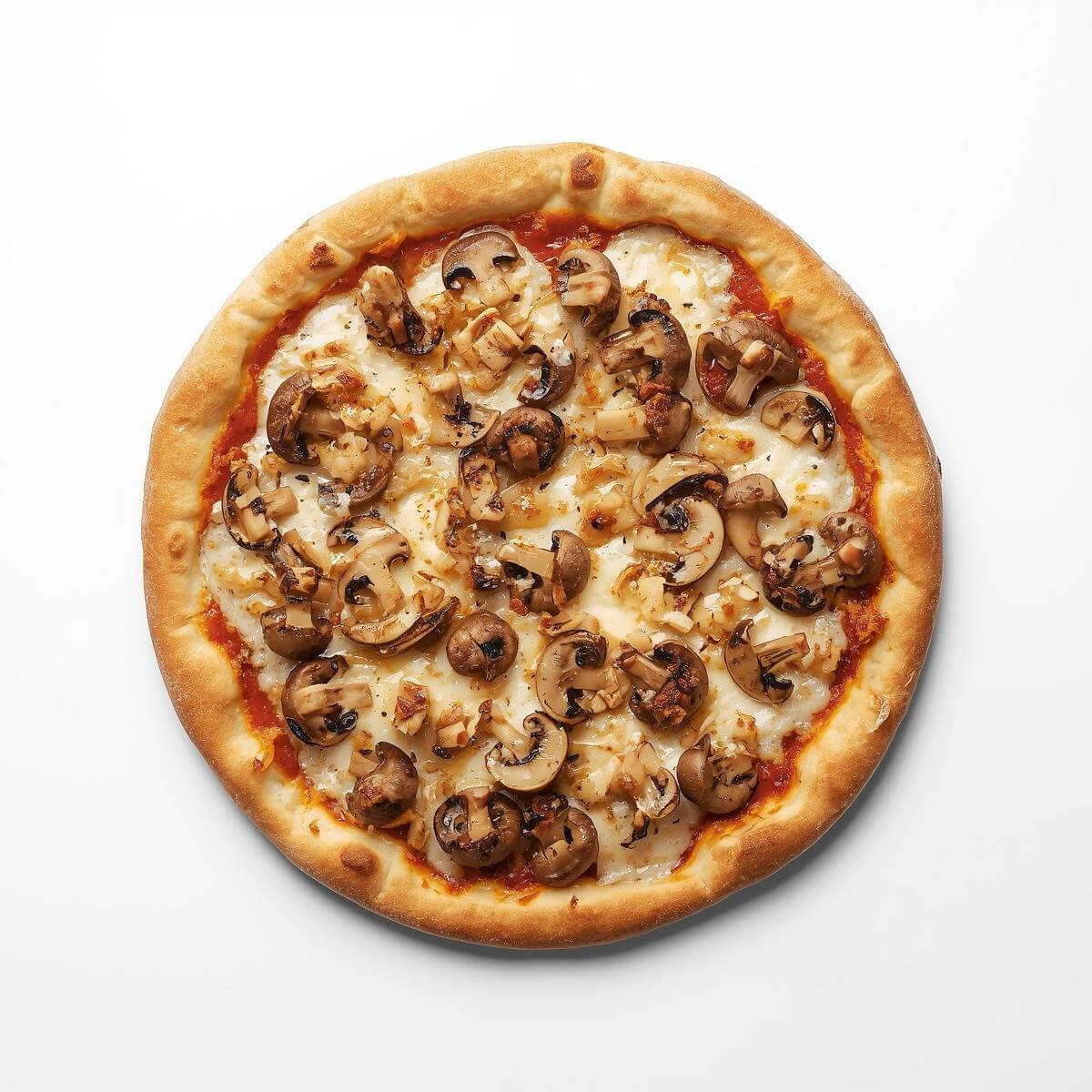 mit gegrillten Champignons, gerösteten Zwiebeln und Knoblauchsoße
