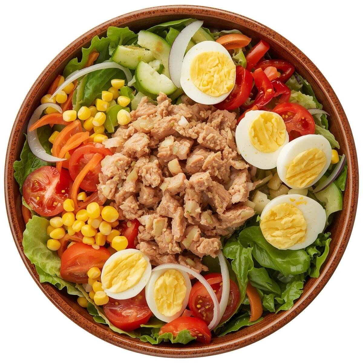 mit gemischtem Salat, Thunfisch und Ei