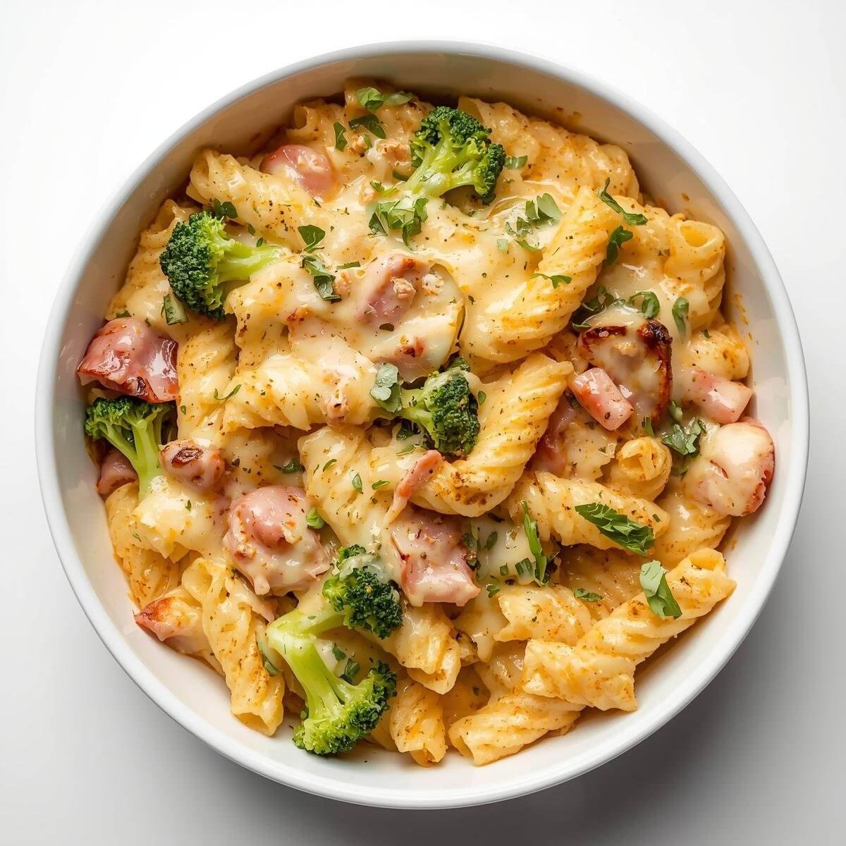 Alforno mit Brokkoli, Cremesauce, Schinken, Holländischer Sauce, überbacken mit Rigatoni und Käse