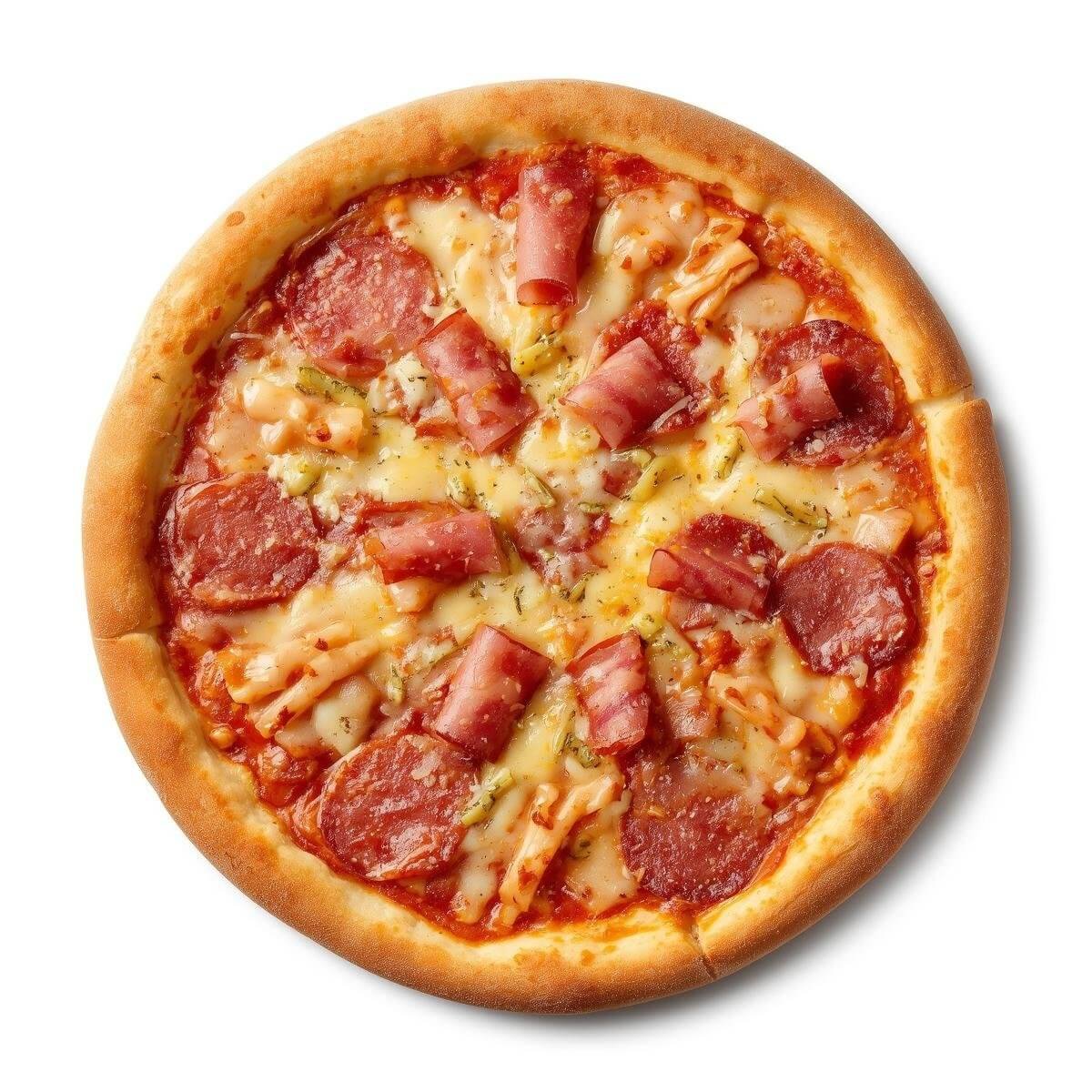 mit Salami, Schinken, Knoblauch und vier Käsesorten
