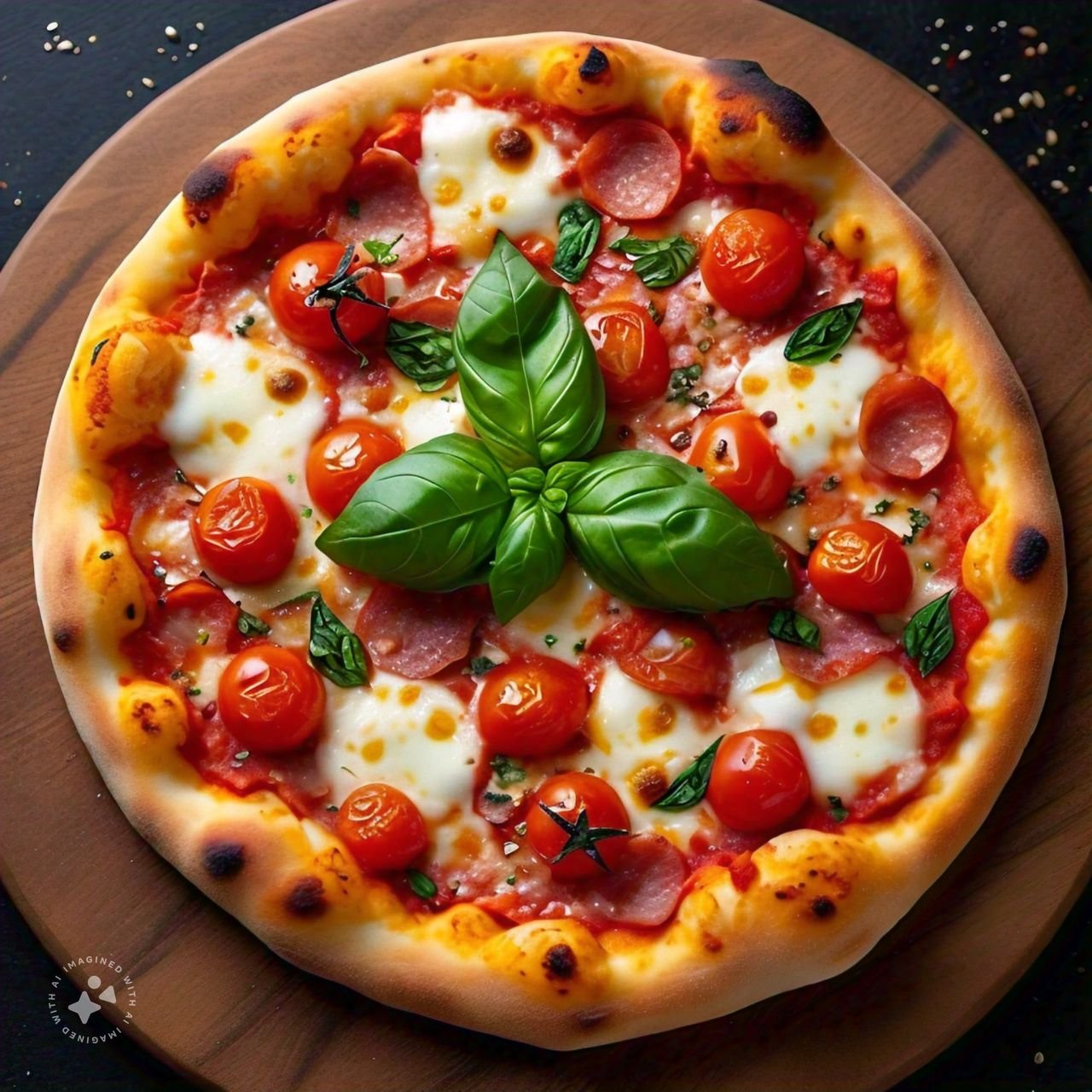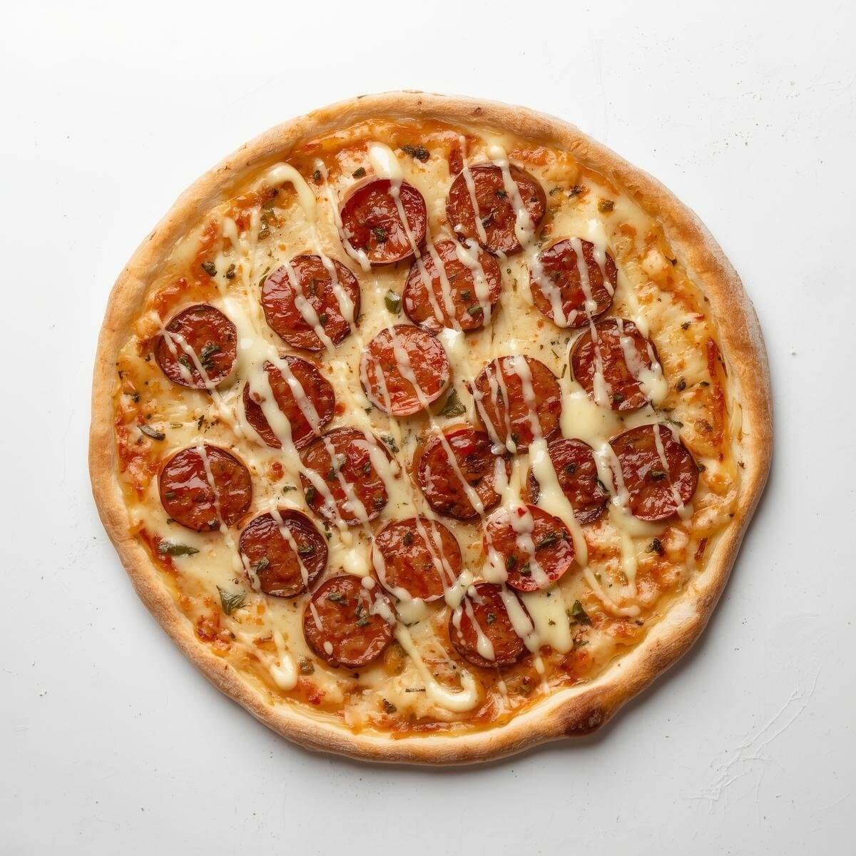 mit Salami, Putenbrust, Sucuk, Champignons, Peperoni und Knoblauch