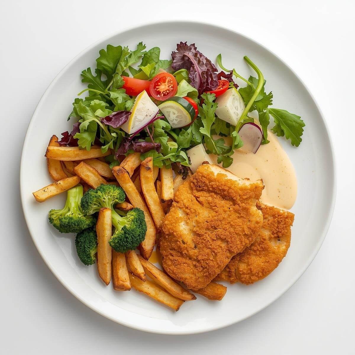 Salat,Tomaten, Zwiebeln, Dubai Style chicken fried, homemade tandoori sauce