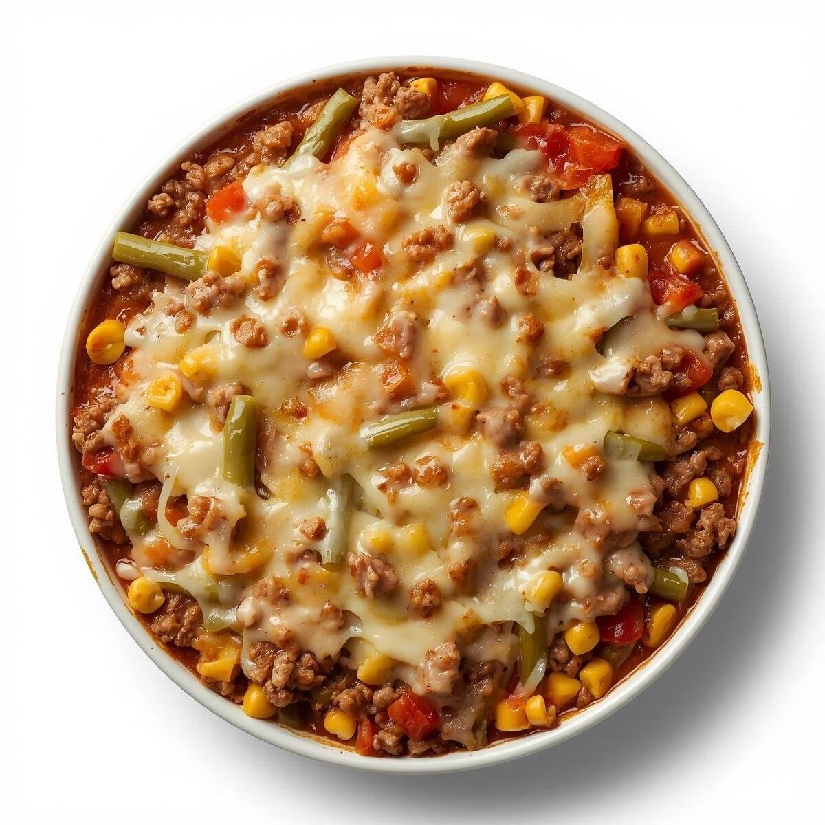 Auflauf mit Hackfleisch, Paprika, Mais und Bohnen