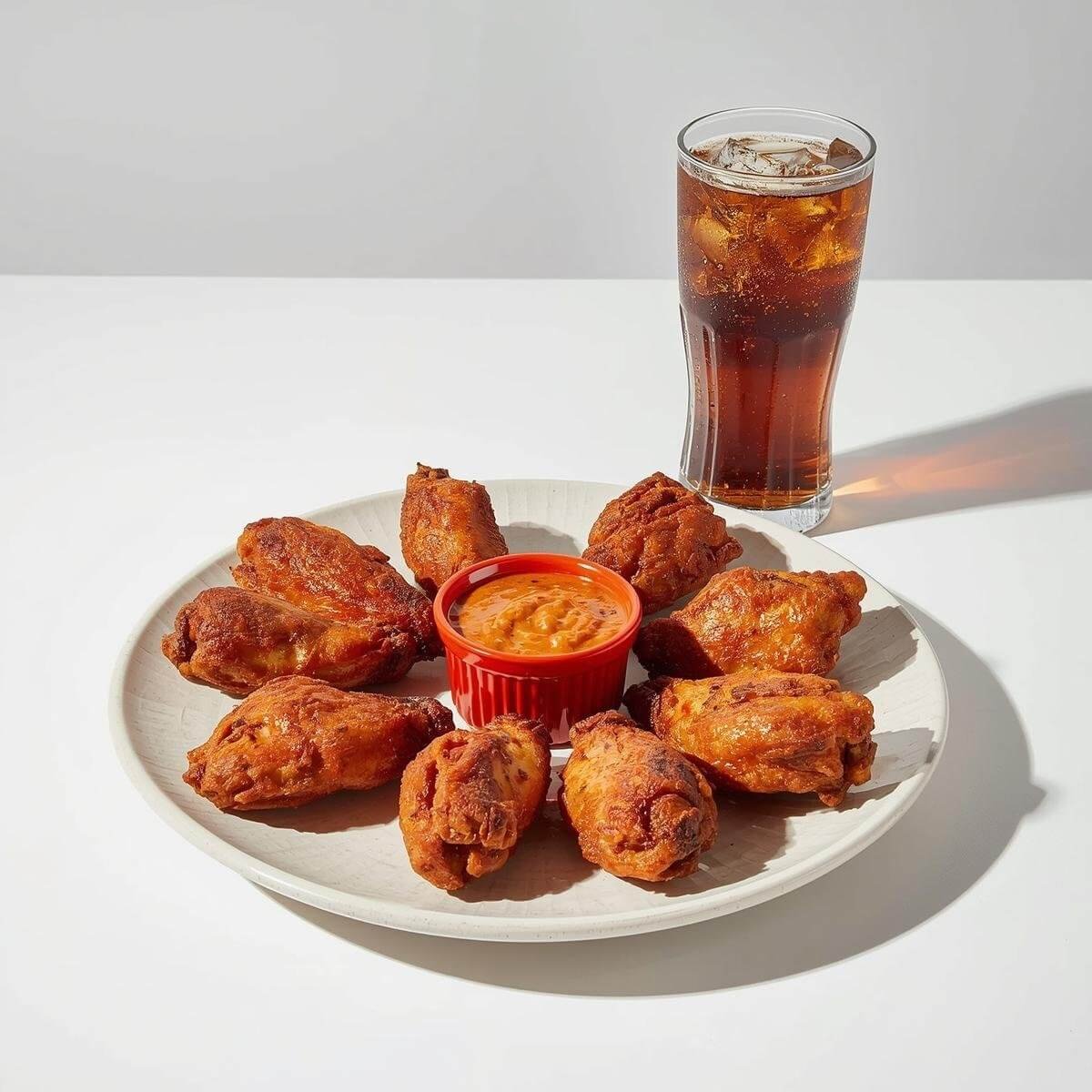 8er Chicken Wings 🔥 Knusprig, würzig & mit feinem Tandoori-Dip – dazu eisgekühltes Cola. Pure Dubai-Vibes!