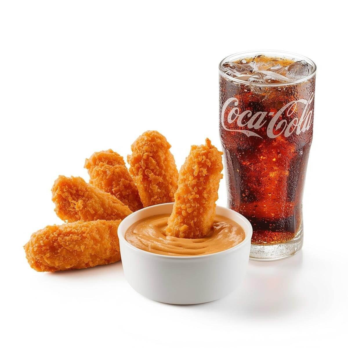 ✨ 4er Finger Chicken ✨ Knusprig, saftig & mit würzigem Tandoori-Dip – dazu eiskaltes Cola. Dubai-Style Snackgenuss! 🍗🥤🔥