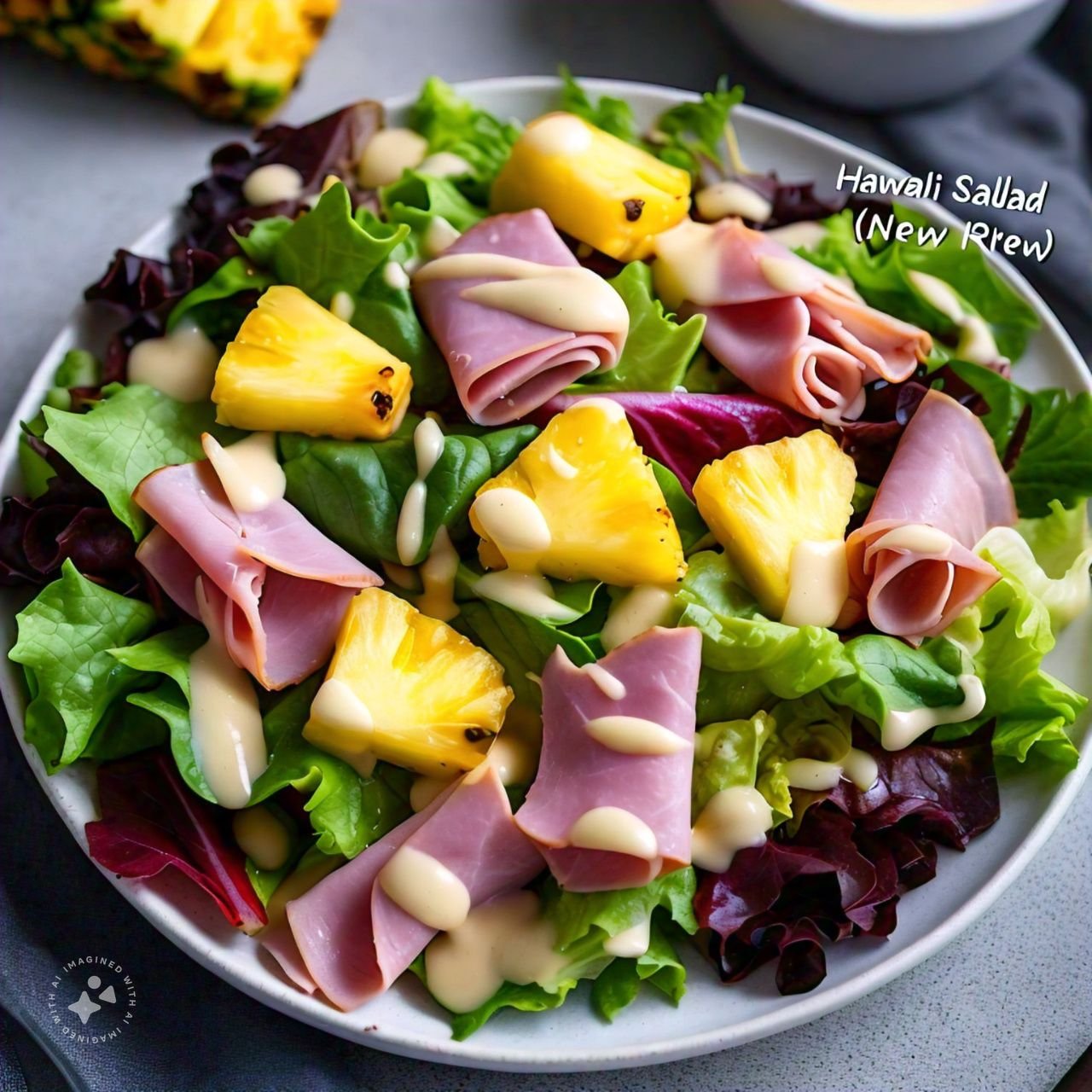 mit gemischtem Salat, Ananas und Putenbrust