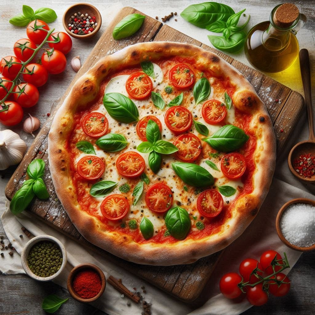 mit Mais, Zwiebeln, Champignons, Paprika, Chili, Knoblauch und Oliven